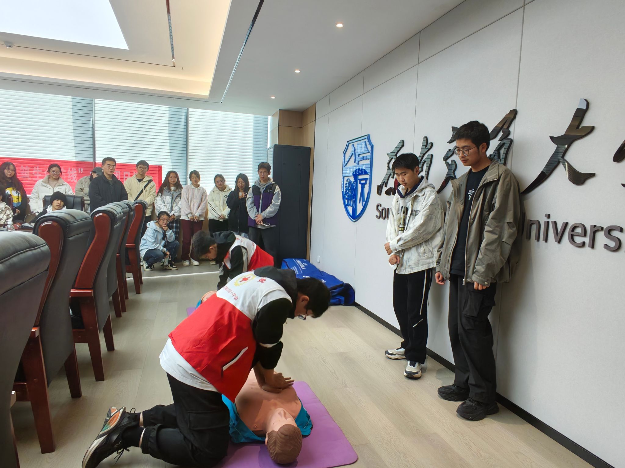 本次培训将专业性与实践性深度融合,不仅切实提升了同学们应对突发状况的应急救护能力,更在校园内传递了“人人学急救,急救为人人”的宝贵理念,为筑牢校园生命防线、营造互助友爱的安全文化贡献了积极力量。